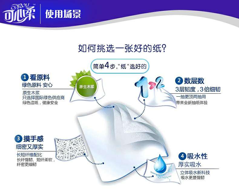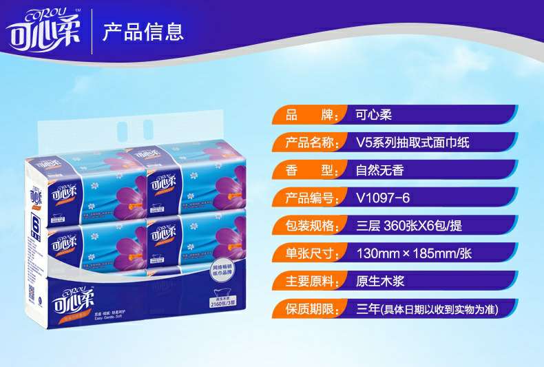 可心柔 V5系列CoRou云柔系列白色木浆60抽